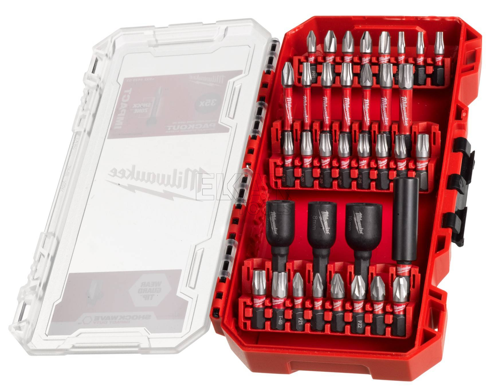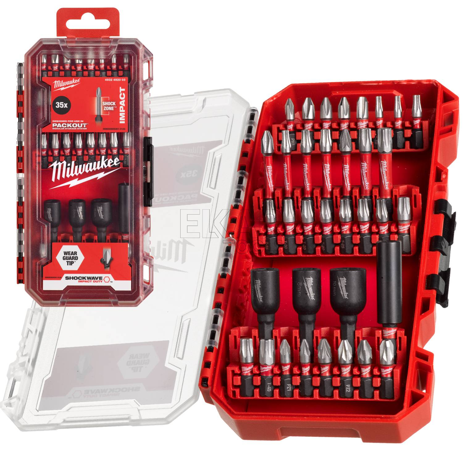 Zestaw 35 bitów i nasadek udarowych Milwaukee SHOCKWAVE™ Impact Duty 4932492003 to wszechstronny komplet narzędzi zaprojektowany specjalnie do pracy z wkrętarkami udarowymi. W skład zestawu wchodzą 24 bity o długości 25 mm, 7 bitów o długości 50 mm, 3 magnetyczne nasadki o długości 48 mm oraz 60 mm magnetyczny uchwyt bitów. Technologia SHOCKWAVE™ Impact Duty zapewnia zwiększoną wytrzymałość i odporność na obciążenia udarowe, co czyni te akcesoria idealnymi do intensywnego użytkowania.