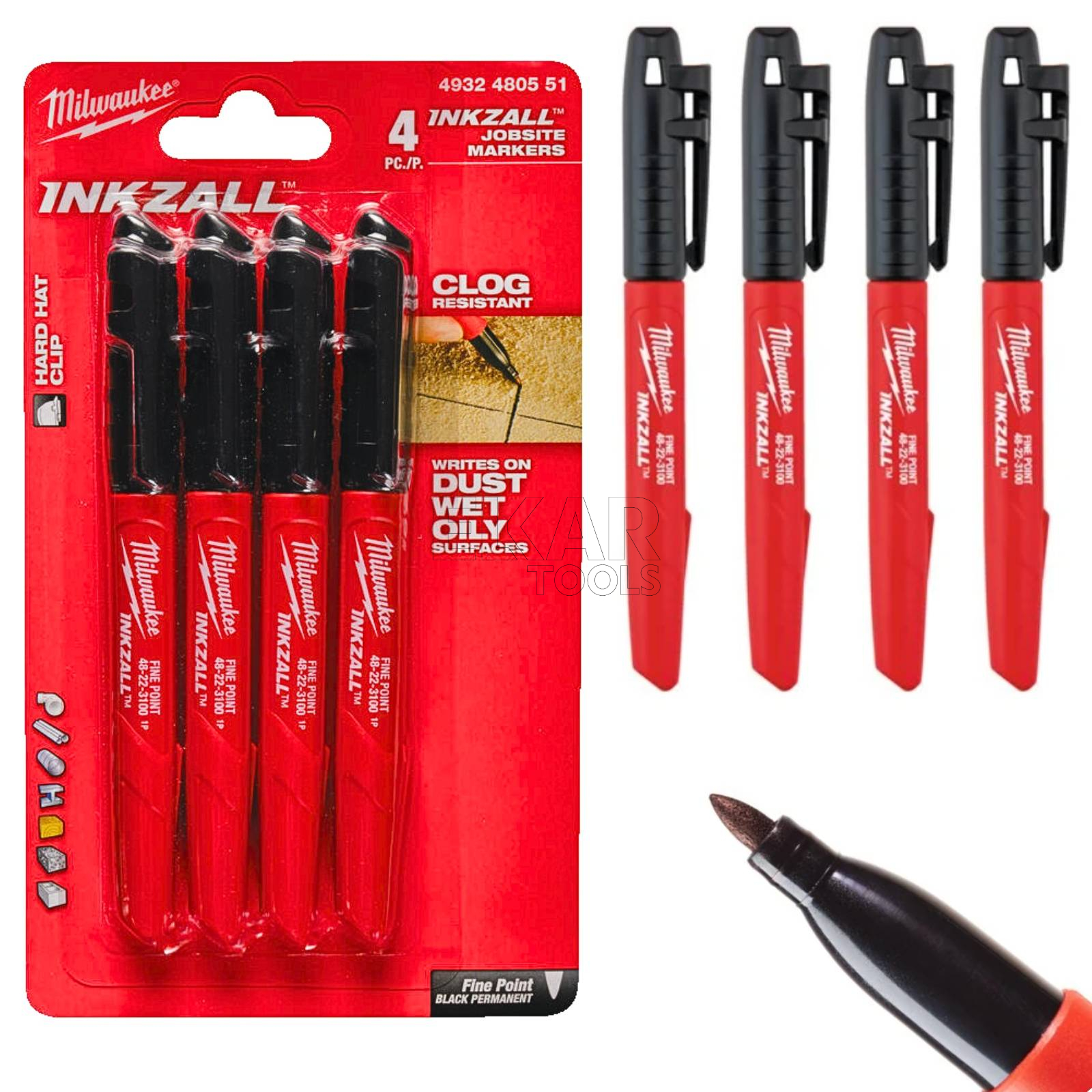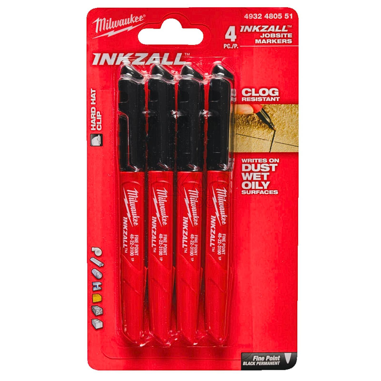 Zestaw 4 czarnych markerów budowlanych Inkzall Milwaukee 4932480551 to niezawodne rozwiązanie dla profesjonalistów, którzy potrzebują trwałego i precyzyjnego narzędzia do oznaczania różnych powierzchni na budowie, w warsztacie czy podczas prac instalacyjnych. Markery zostały zaprojektowane z myślą o pracy w trudnych warunkach – piszą po zabrudzonych, zakurzonych, zaolejonych oraz mokrych powierzchniach, takich jak beton, drewno, metal, plastik czy ceramika. Szybkoschnący tusz minimalizuje ryzyko rozmazywania, a wytrzymała końcówka nie ulega uszkodzeniu nawet podczas pisania po chropowatych materiałach.