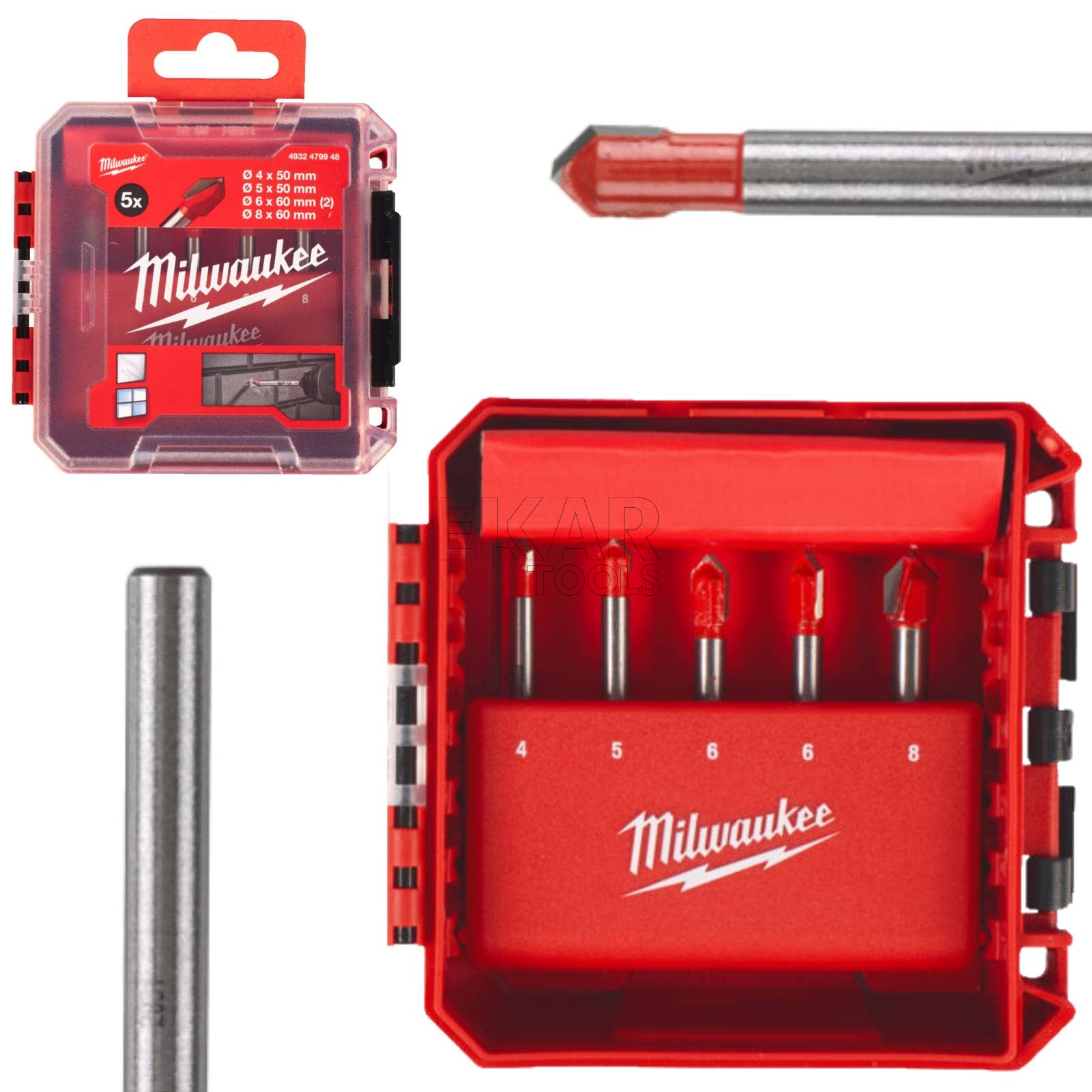 Zestaw 5 wierteł do szkła i ceramiki 4-8mm Milwaukee 4932479948