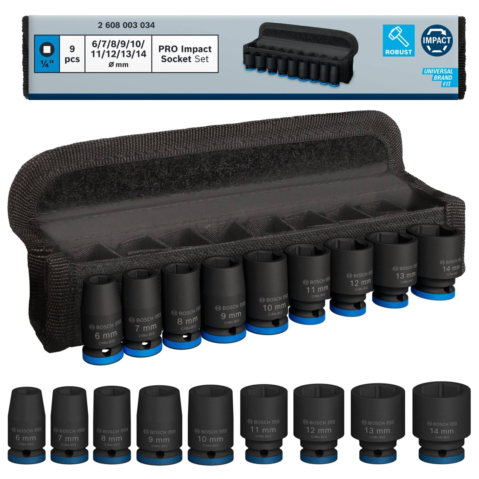 Zestaw 9 nasadek udarowych krótkich 1/4 6-14mm BOSCH PRO Impact 2608003034