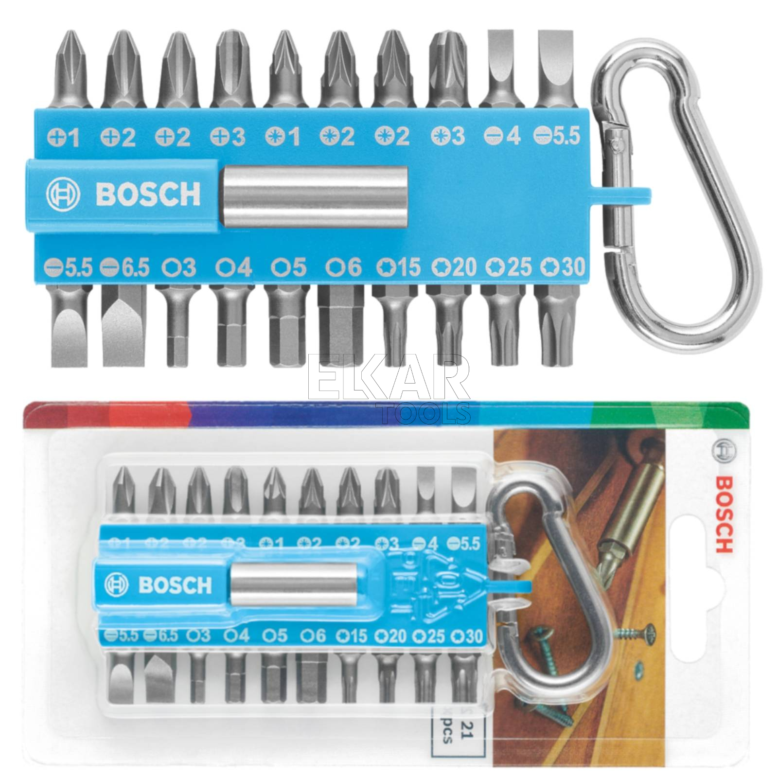 Zestaw bitów PZ/PH/T/SL/HEX z uchwytem 21 szt niebieski BOSCH 2607002822