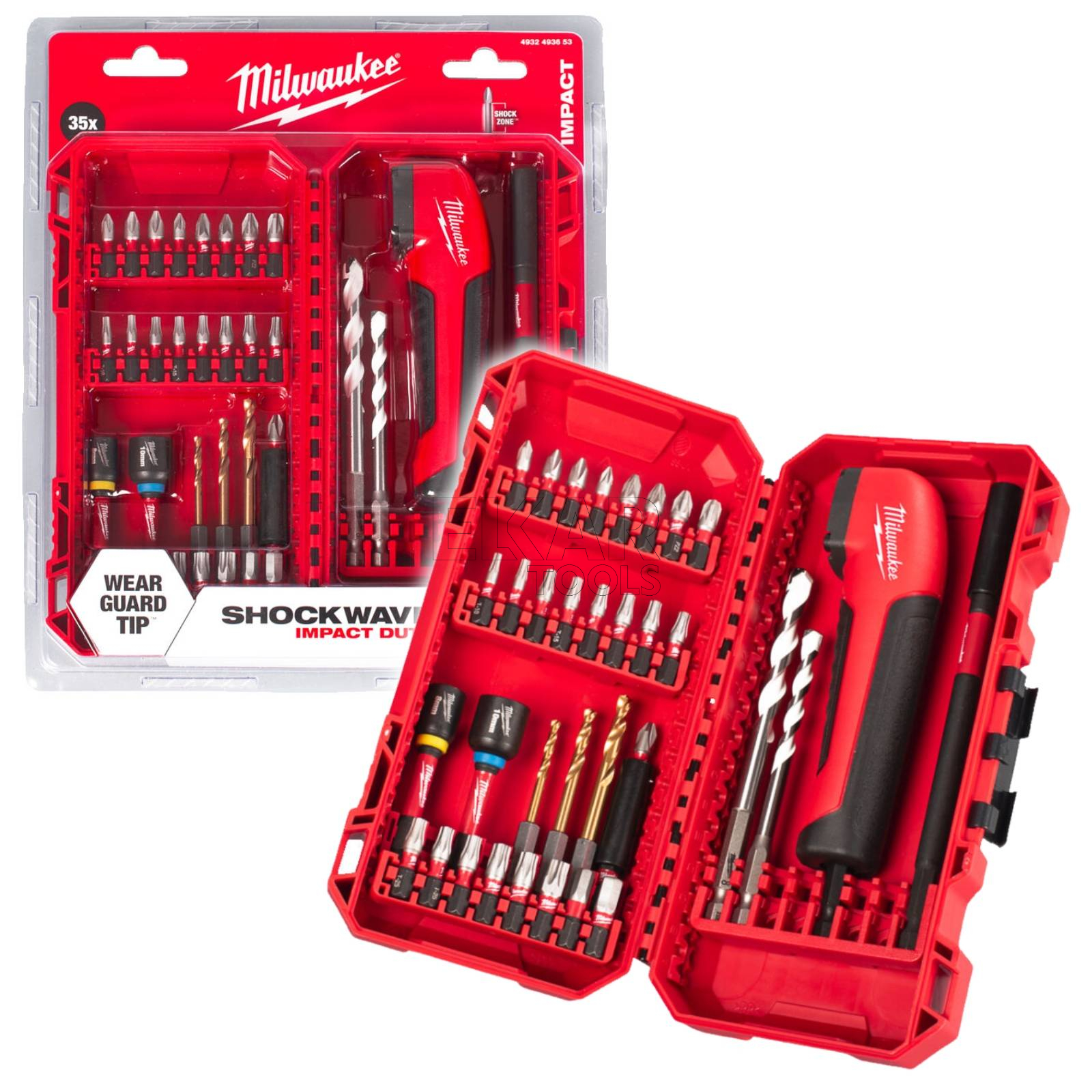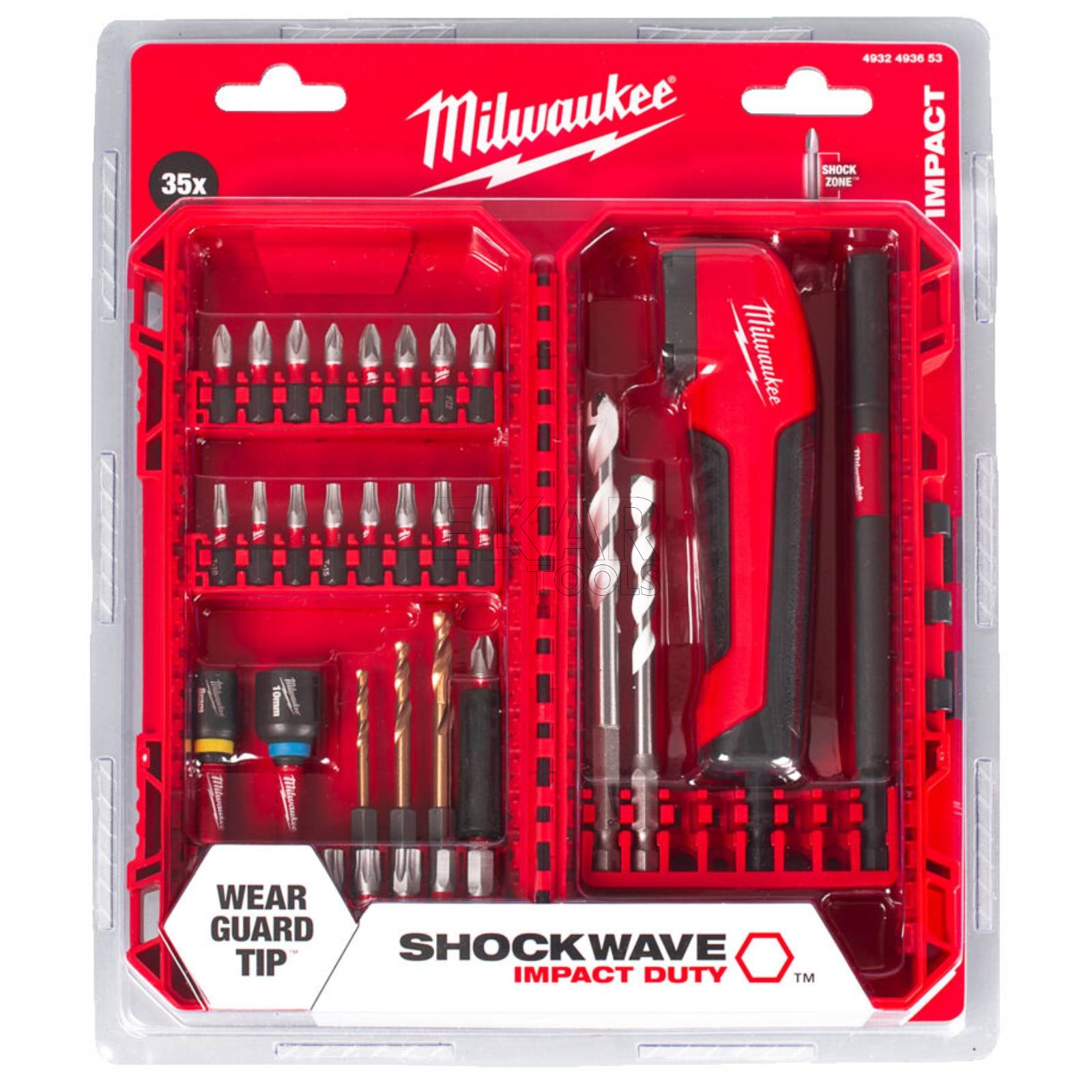 Zestaw bitów udarowych i wierteł z przystawką 35szt Milwaukee SHOCKWAVE™ IMPACT DUTY 4932493653