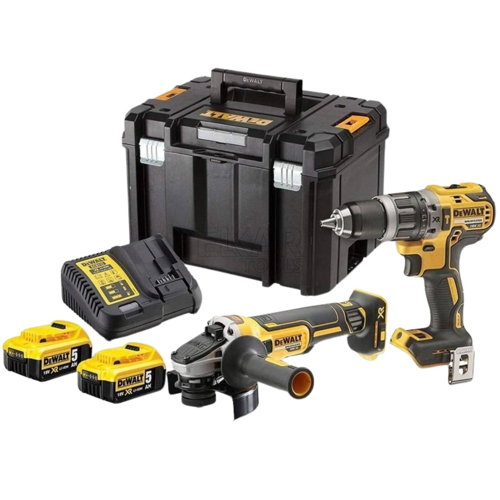 Zestaw COMBO DeWalt DCK2080P2T to profesjonalny komplet narzędzi akumulatorowych, który łączy w sobie wydajność, trwałość i mobilność – idealny dla wymagających użytkowników. W skład zestawu wchodzi wkrętarka udarowa DeWalt DCD796 oraz szlifierka kątowa DeWalt DCG405, obie z nowoczesnymi silnikami bezszczotkowymi, zapewniającymi dłuższą żywotność, większą moc i mniejsze zużycie energii. Wkrętarka DCD796 to kompaktowe urządzenie 2-biegowe z funkcją udaru, przeznaczone do wiercenia i wkręcania w różnych materiałach, w tym w murze. Z kolei szlifierka DCG405 wyposażona jest w tarczę 125 mm i funkcję hamulca tarczy, co znacząco podnosi bezpieczeństwo podczas pracy.
