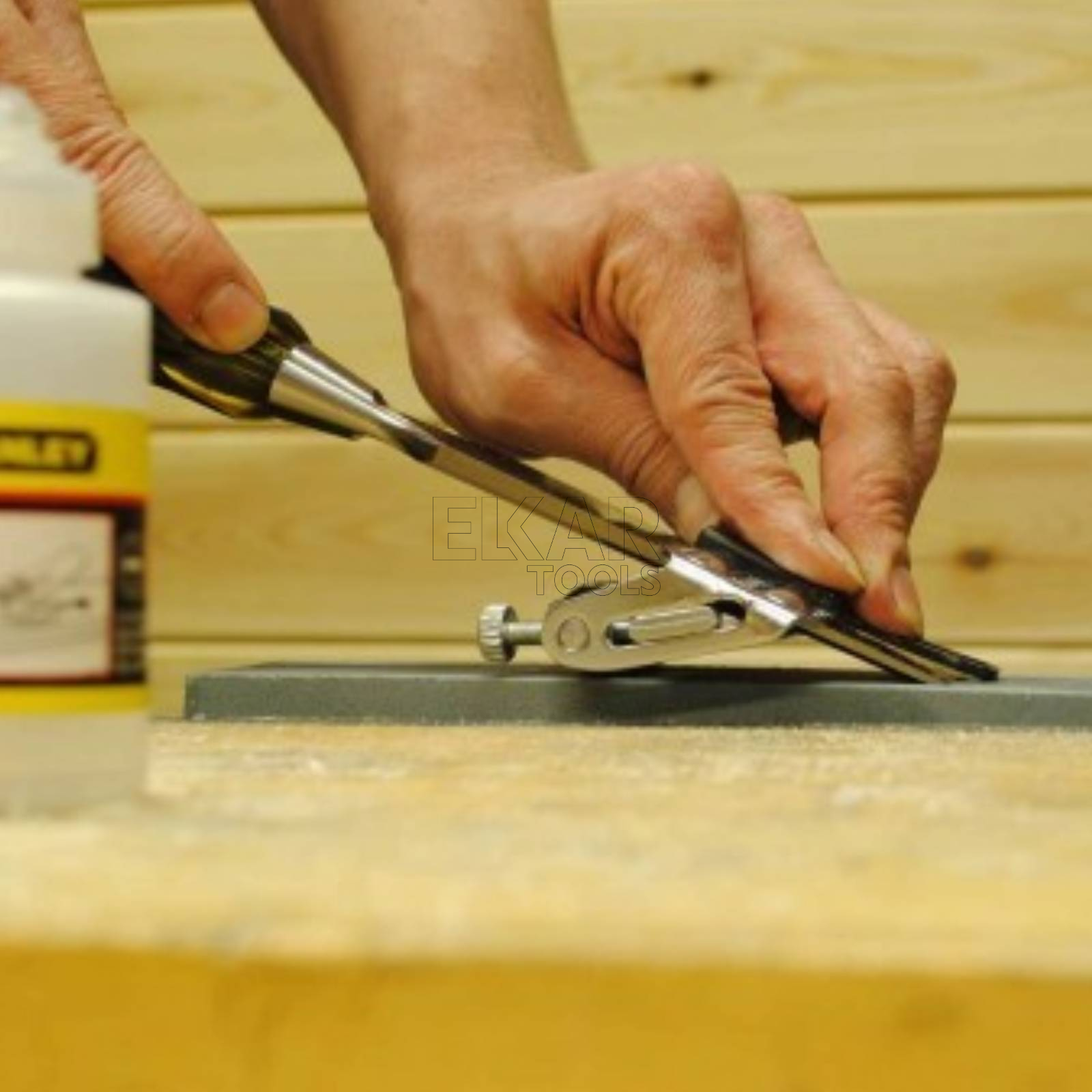 Zestaw do ostrzenia dłut, noży i strugów STANLEY 0-16-050 to praktyczne i precyzyjne rozwiązanie dla wszystkich, którzy chcą utrzymać swoje narzędzia stolarskie w idealnej kondycji. Komplet został zaprojektowany z myślą o łatwym i skutecznym ostrzeniu krawędzi tnących, zapewniając optymalną wydajność pracy i dłuższą żywotność dłut, noży oraz ostrzy strugów. W skład zestawu wchodzi uchwyt prowadzący, który umożliwia ustawienie odpowiedniego kąta ostrzenia, oraz dwustronny kamień ostrzący (ziarnistość 120 i 280), zapewniający zarówno wstępne szlifowanie, jak i dokładne wykończenie ostrza. Zestaw STANLEY 0-16-050 jest łatwy w użyciu, nawet dla osób bez doświadczenia, i sprawdzi się zarówno w warsztacie stolarskim, jak i podczas prac hobbystycznych. To niezawodne narzędzie dla każdego, kto ceni precyzję, ostrość i profesjonalne wykończenie swoich narzędzi ręcznych.