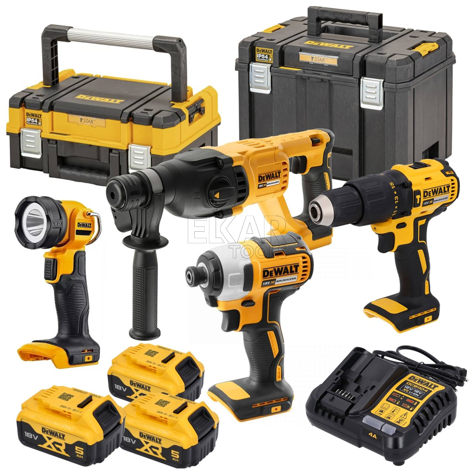 Zestaw DeWalt DCK440L3T dostarczany jest z trzema akumulatorami 18V o pojemności 4,0 Ah każdy, co zapewnia długi czas pracy bez konieczności częstego ładowania. W komplecie znajduje się również ładowarka oraz wytrzymała walizka transportowa, ułatwiająca przechowywanie i transport narzędzi. Dzięki połączeniu tych czterech narzędzi, zestaw DeWalt DCK440L3T stanowi wszechstronne i niezawodne rozwiązanie dla każdego profesjonalisty, oferując moc, precyzję i komfort użytkowania w codziennych zadaniach.