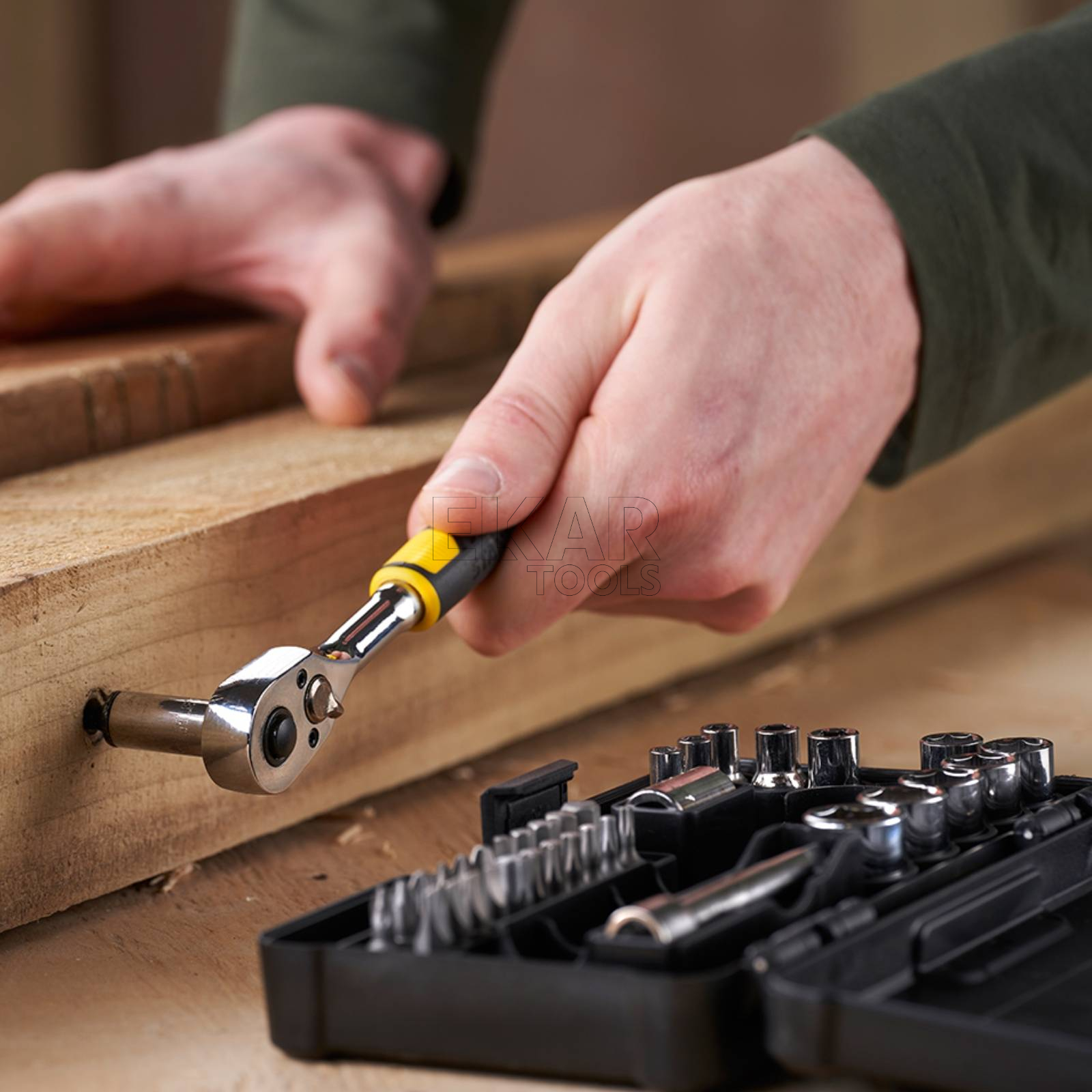 Szeroki wybór: zestaw zawiera 1 x grzechotkę 1/4" 72 zęby, 12 x nasadki 1/4" (6-punktowe), 1 x przedłużkę 1/4", 22 x bity 1/4" i adapter bitów 1/4"