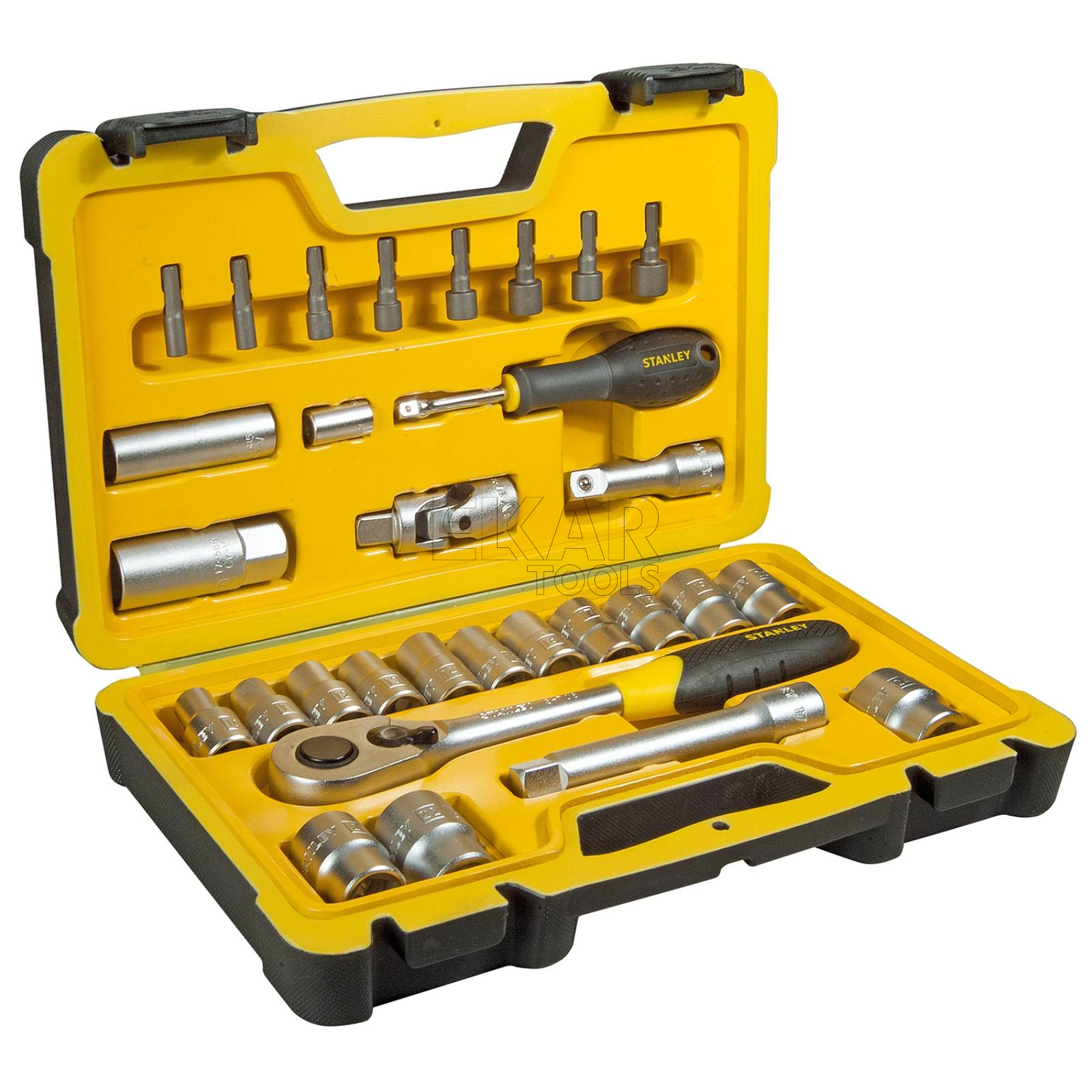 - Stanley STHT0-73929 to zestaw kluczy nasadowych wykonanych z trwałej stali chromowo-wanadowej, dodatkowo chromowanych, aby zapobiec korozji.