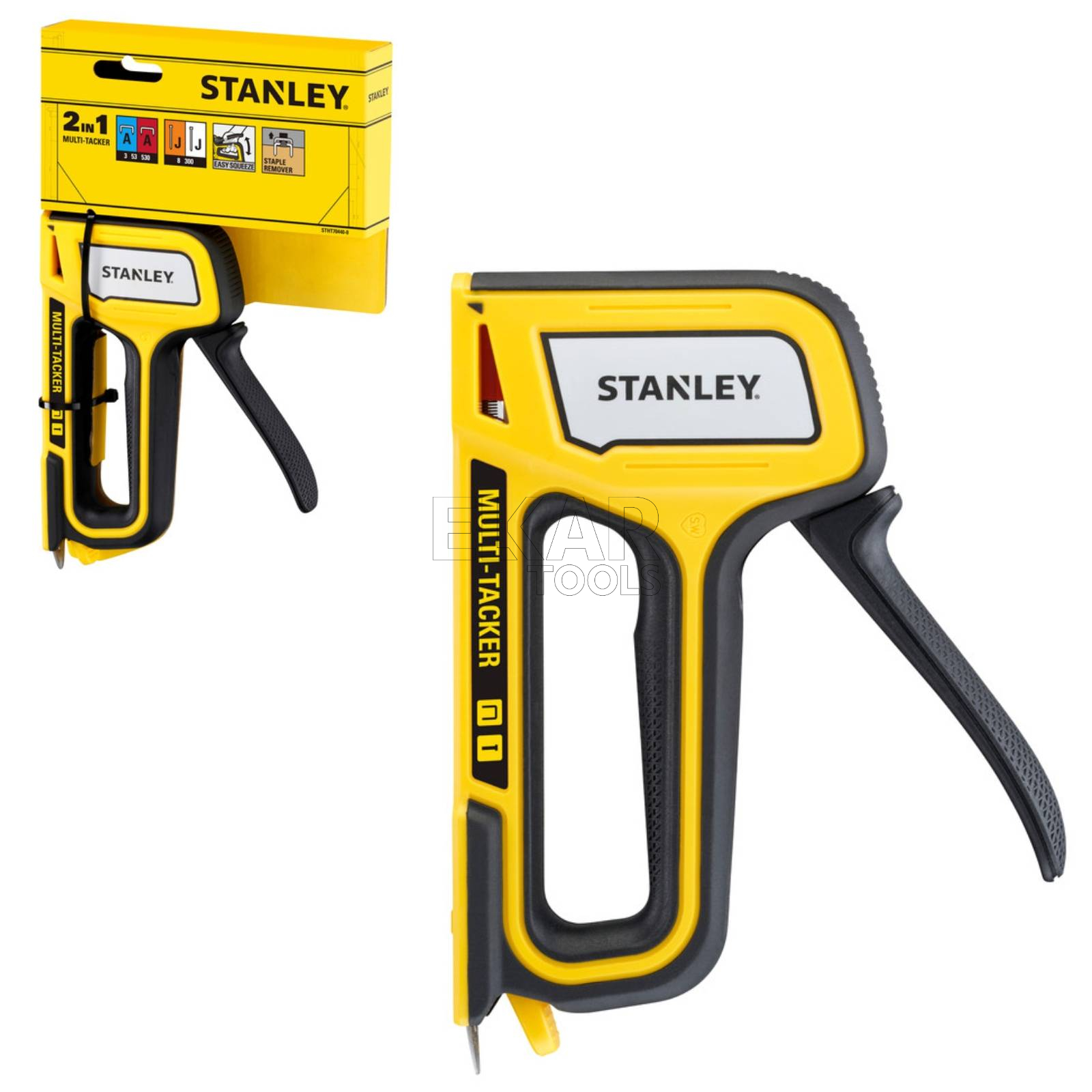 Zszywacz ręczny tapicerski 2w1 Stanley STHT70440 to wszechstronne i trwałe narzędzie stworzone z myślą o profesjonalnych pracach tapicerskich, montażowych i wykończeniowych. Dzięki obsłudze dwóch typów elementów mocujących – zszywek typu A oraz gwoździ typu J – model STHT70440 oferuje szerokie możliwości zastosowania, od mocowania tkanin i folii po lekkie prace stolarskie i dekoracyjne. Solidna konstrukcja typu Heavy-Duty zapewnia wysoką odporność na intensywne użytkowanie, a ergonomiczny uchwyt z antypoślizgową powłoką zwiększa komfort pracy i precyzję prowadzenia narzędzia.