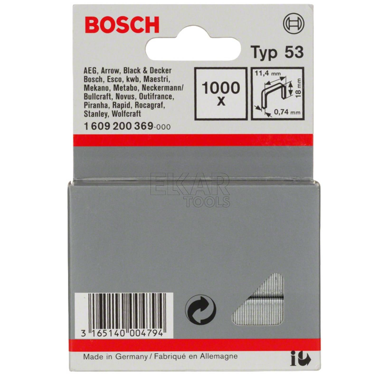 Zszywki do zszywaczy 18mm TYP 53 1000szt BOSCH 1609200369