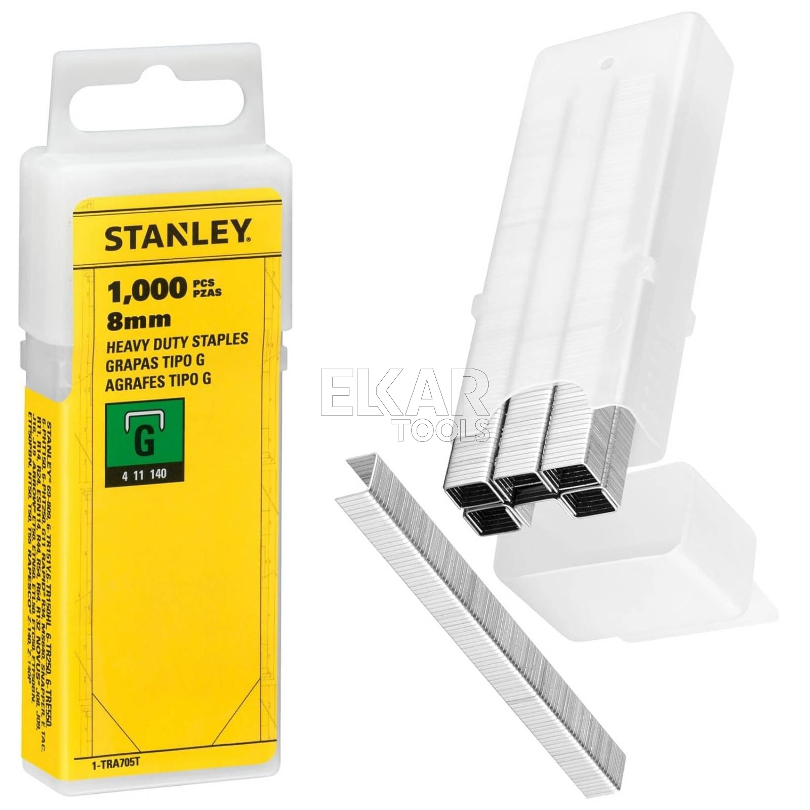 Zszywki stalowe G 4/11/140 8 mm 1000 szt. STANLEY 1-TRA705T to solidne elementy mocujące przeznaczone do precyzyjnych i trwałych prac montażowych, tapicerskich oraz wykończeniowych. Wykonane z wysokiej jakości stali zapewniają pewne wbijanie i stabilne trzymanie materiału, co przekłada się na estetyczne i odporne na poluzowanie połączenia. Długość 8 mm sprawia, że zszywki doskonale nadają się do mocowania tkanin, folii, siatek, izolacji oraz cienkich elementów drewnianych do podłoży z drewna i materiałów drewnopochodnych.